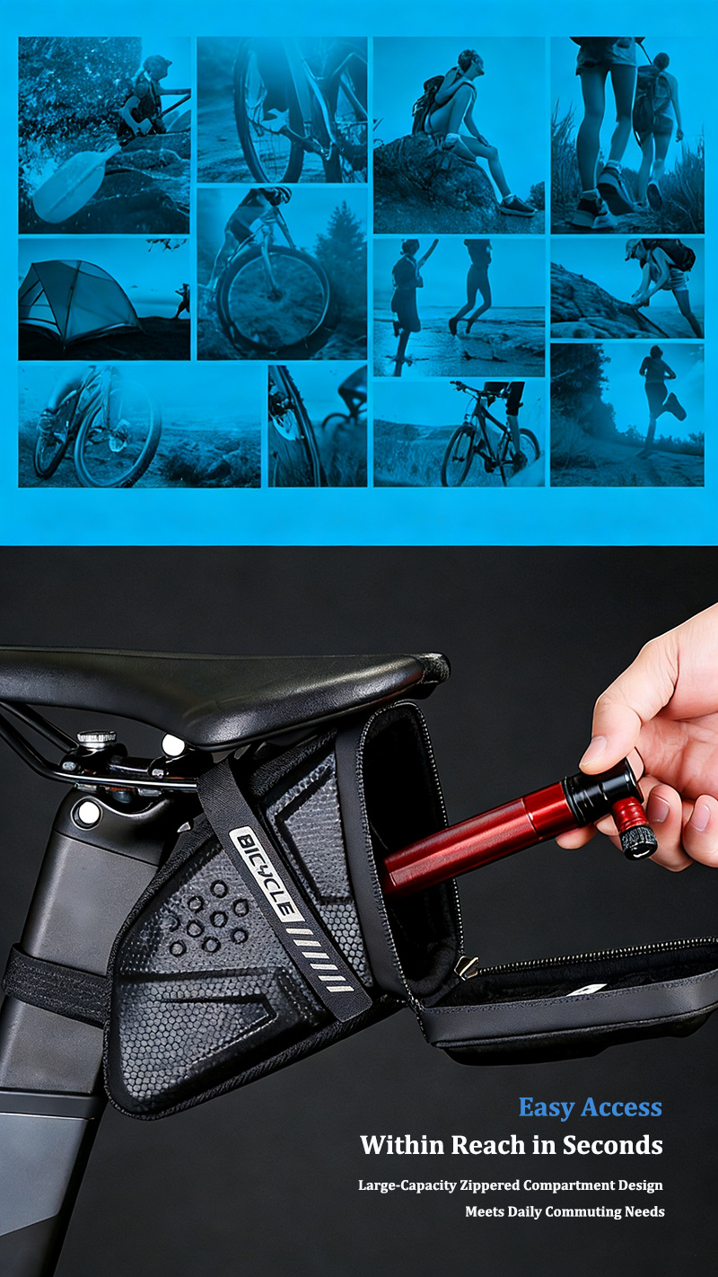 Universal Fit: The heavy-duty Velcro strap system provides a rock-solid, tool-free installation on any standard saddle rail—from carbon-fiber road bikes to rugged mountain bikes.