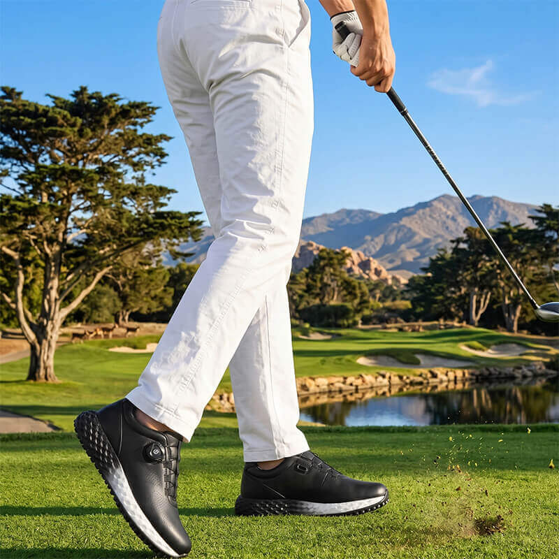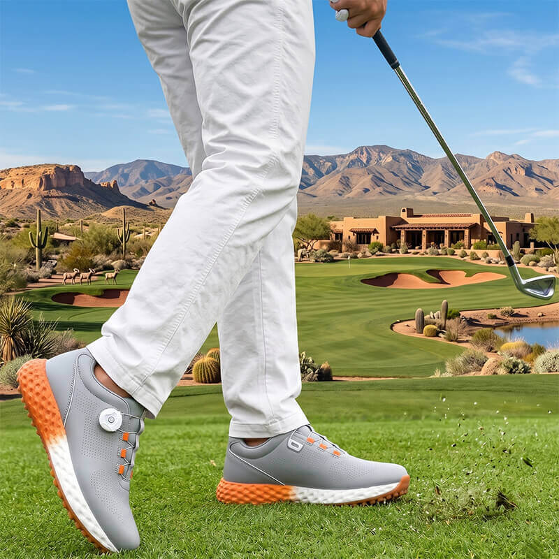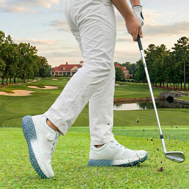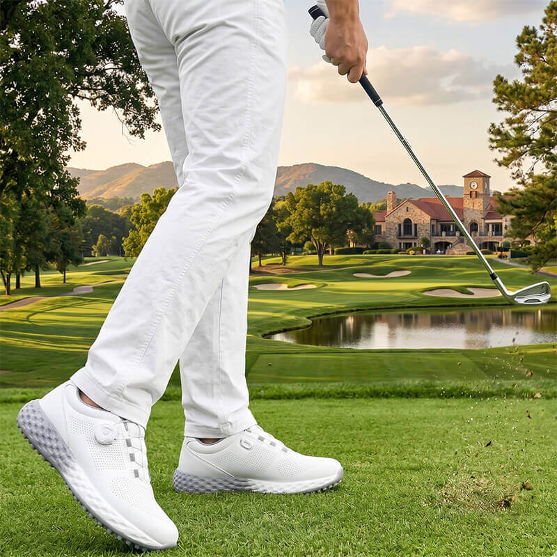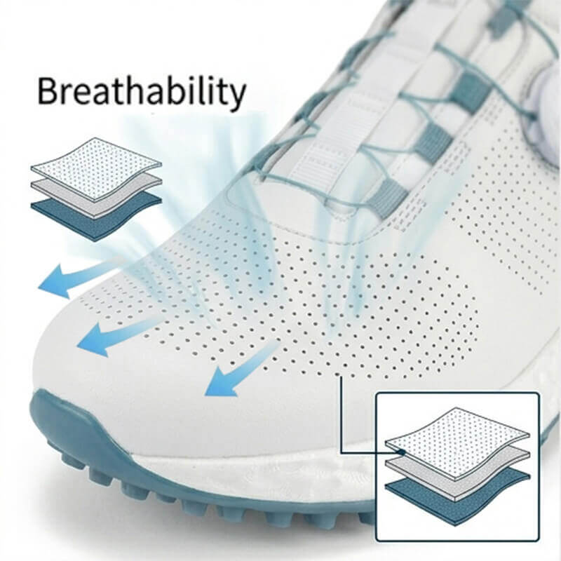 All-Day Comfort & Breathability Crafted with a premium breathable knitted mesh, these lightweight golf sneakers allow for maximum airflow, keeping your feet dry and odor-free. Whether you're a pro or a hobbyist, the cushioned midsole absorbs impact, making it the most comfortable golf footwear for long-distance walking on the course.