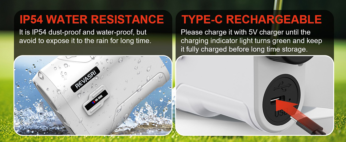 All-Weather Reliability: Featuring an IPX4 water-resistance rating, this rangefinder is built to withstand sudden rain showers and damp morning rounds.