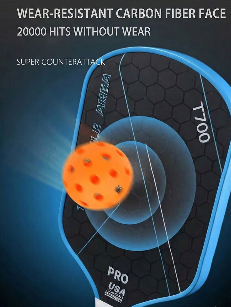 The triple-layer carbon fiber face provides explosive power and superior control. The honeycomb core reduces shock and arm fatigue, letting you play longer and stronger.