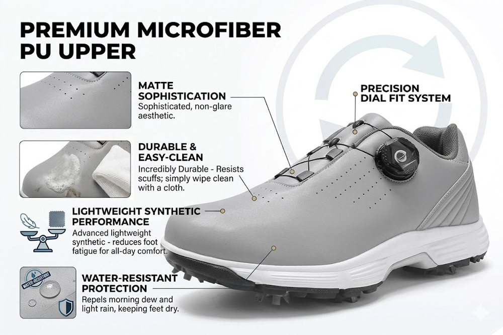 Premium Microfiber PU Upper: Crafted from high-grade microfiber leather, these shoes offer a sophisticated matte finish that is incredibly durable, easy to clean, and water-resistant. They provide the premium feel of leather with the lightweight performance of modern synthetics.