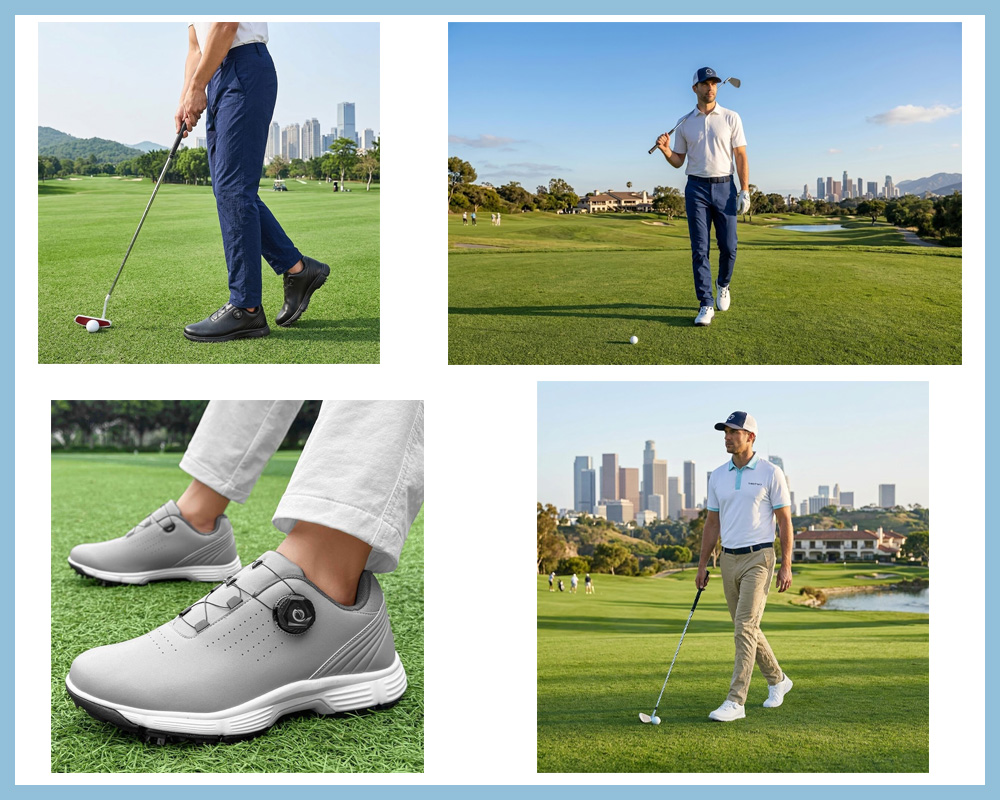 Contemporary Aesthetic: From the sleek urban backdrop to the manicured green, these shoes transition perfectly. Available in versatile Black, Sleek Grey, and Classic White to match any golf attire.